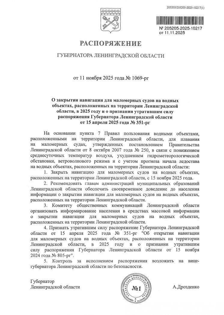 Соответствующее распоряжение подписал губернатор Ленобласти Александр Дрозденко.